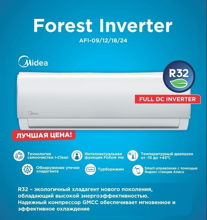 Кондиционер MIDEA AFI-09 N8D1 INVERTER до 25кв.м, WI-FI
